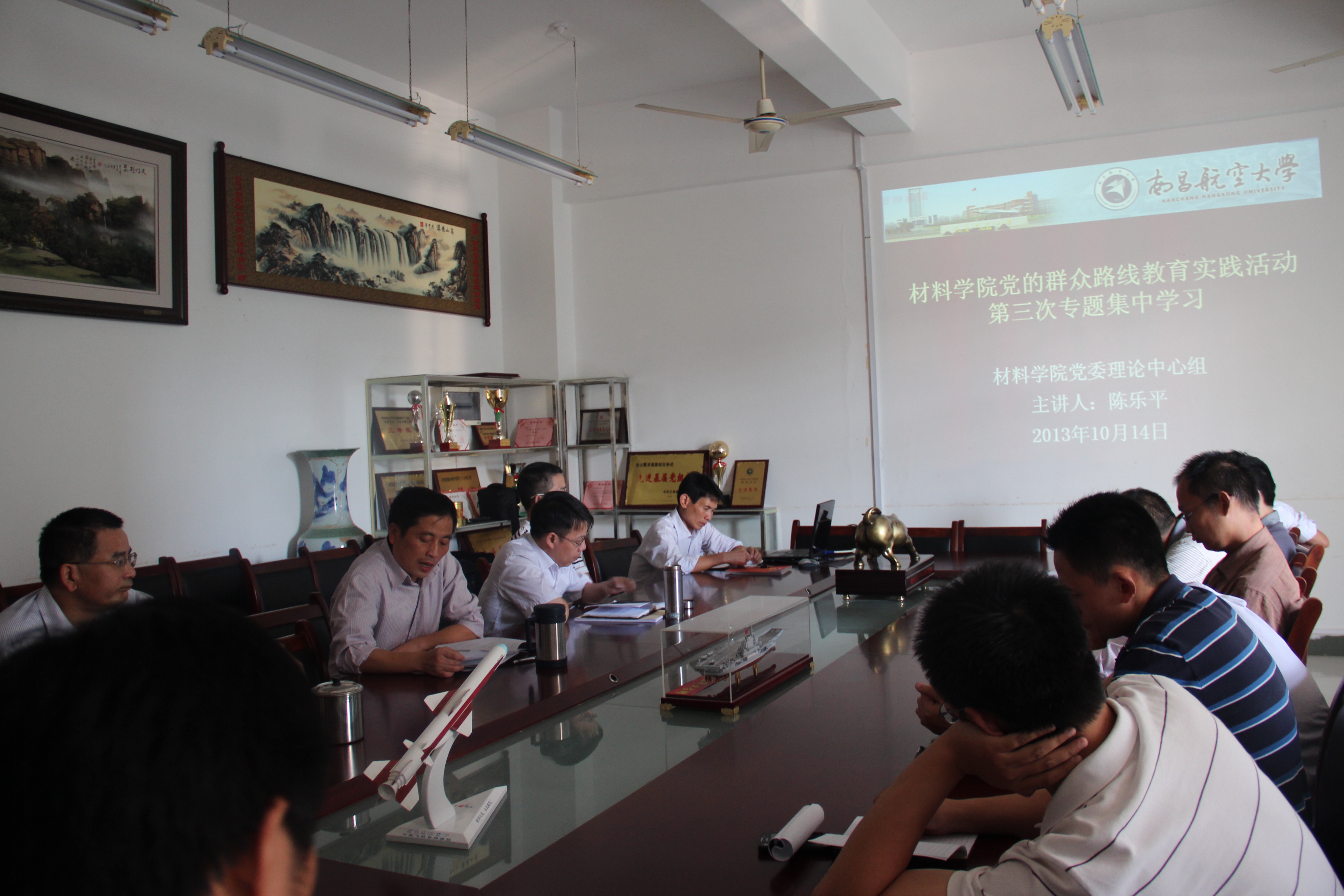 10月14日下午,材料学院召开党的群众路线教育实践活动第三次专题集中学习会,院领导陈乐平、罗军明、袁宁、郑海忠、李淑贤,教工党支部书记、各系主任以及学院科级干部参加了会议。会议由学院党委书记陈乐平主持。
