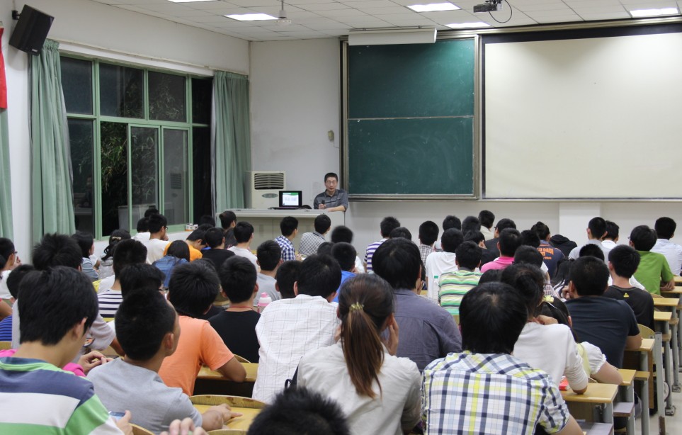幽默的郭正华老师首先发言,他给在座的同学们介绍了我校研究生学院2013年的招生情况:我校今年共招580人,推免68人,一志愿上线184人,调剂328人。学校针对国家今年起开始实施的研究生自费政策也采取了许多利于学生的一些举措。郭老师最后还强调“励志考研容易,坚持有点难”所以一旦选择走向考研这条道,就一定要坚持下去,坚信:坚持就一定能胜利。