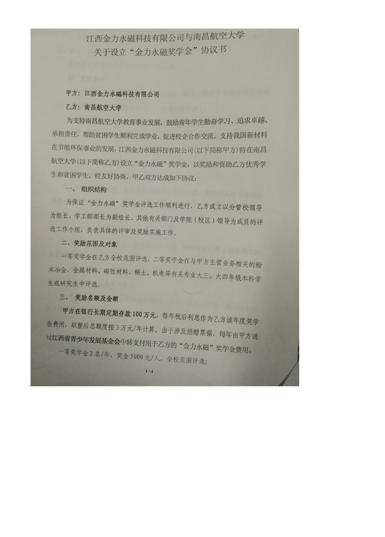 南昌航空大学金力永磁奖学金评审办法