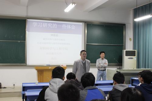 为了提高材料学院研究生的科研兴趣,增强学院学术研究氛围,促进研究生更快地进入学术课题研究,11月21日晚上7点,材料学院特邀钟振晨特聘教授在逸夫楼408教室作了题为《学习研究的一些感悟》的学术报告。学院党委书记季俊峰主持报告,材料学院研究生以及部分本科生聆听了报告。