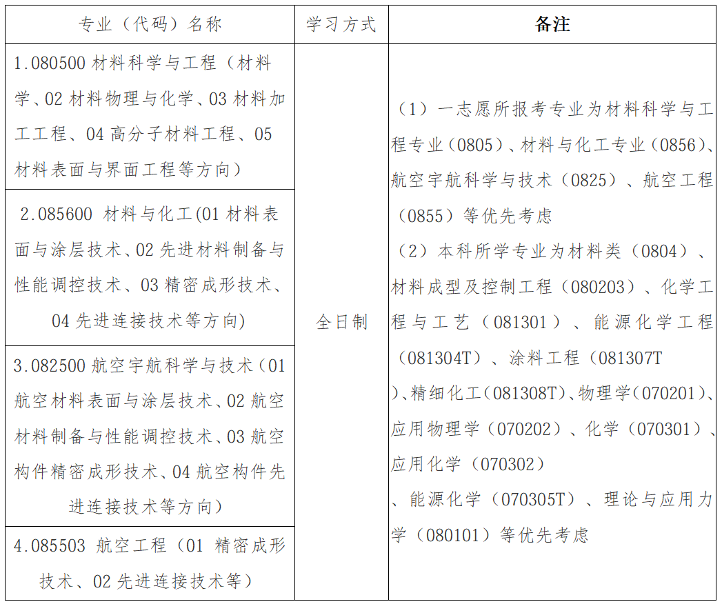 2.原则上,调剂考生第一志愿专业与调入专业相同或相近,应在同一学科门类范围内。优先考虑一志愿报考了材料类或化学类专业和本科是材料类或化学类专业的工学考生。